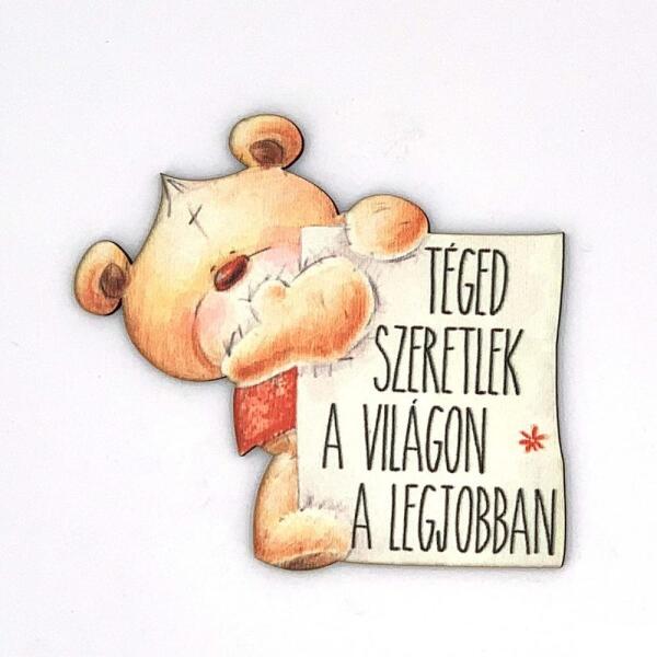 Forma Hűtőmágnes - Téged szeretlek Méret: 6,5 x 9,8 cm Anyaga: Fa Formára vágott fa hűtőmágnesek. Felirat: Téged szeretlek a világon a legjobban Hűtőmágnesek a legjobb és legkedveltebb ajándék ötletek egyike. Remek ajándék ötlet valentin napjára szerelmeseknek, vagy bármely más alkalomra  születésnapra, névnapra.